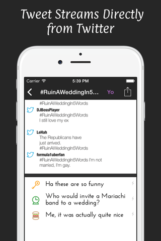 ** See live tweet streams directly from Twitter on trending hashtags, and chat about it too!**