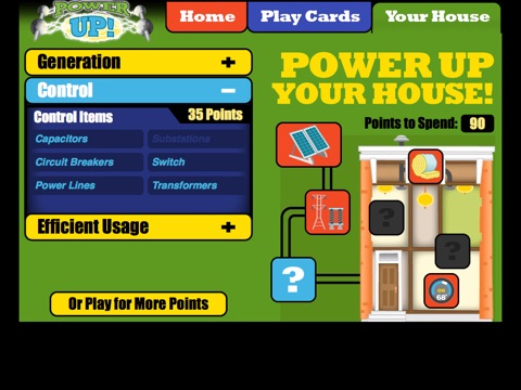 Play this game at the "Power Up" exhibit at the Maryland Science Center, in Baltimores Inner Harbor. As you explore the exhibit, draw cards about electricity, the power grid, and energy conservation. Choose carefully to make your best pair of cards, then spend points to power up your house!
