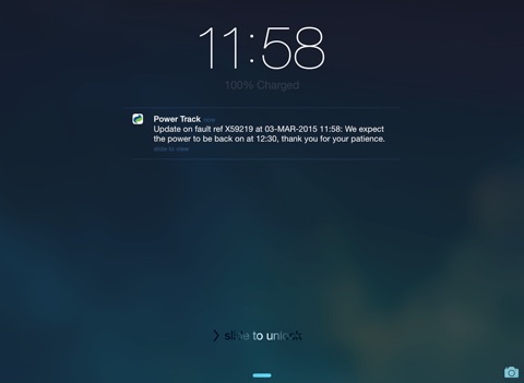 The app displays pins on a map overlay showing areas affected by current power cuts. Tapping on this pin gives you a link to more information about the problem. Power Track also provides a summary list of reported power cuts.