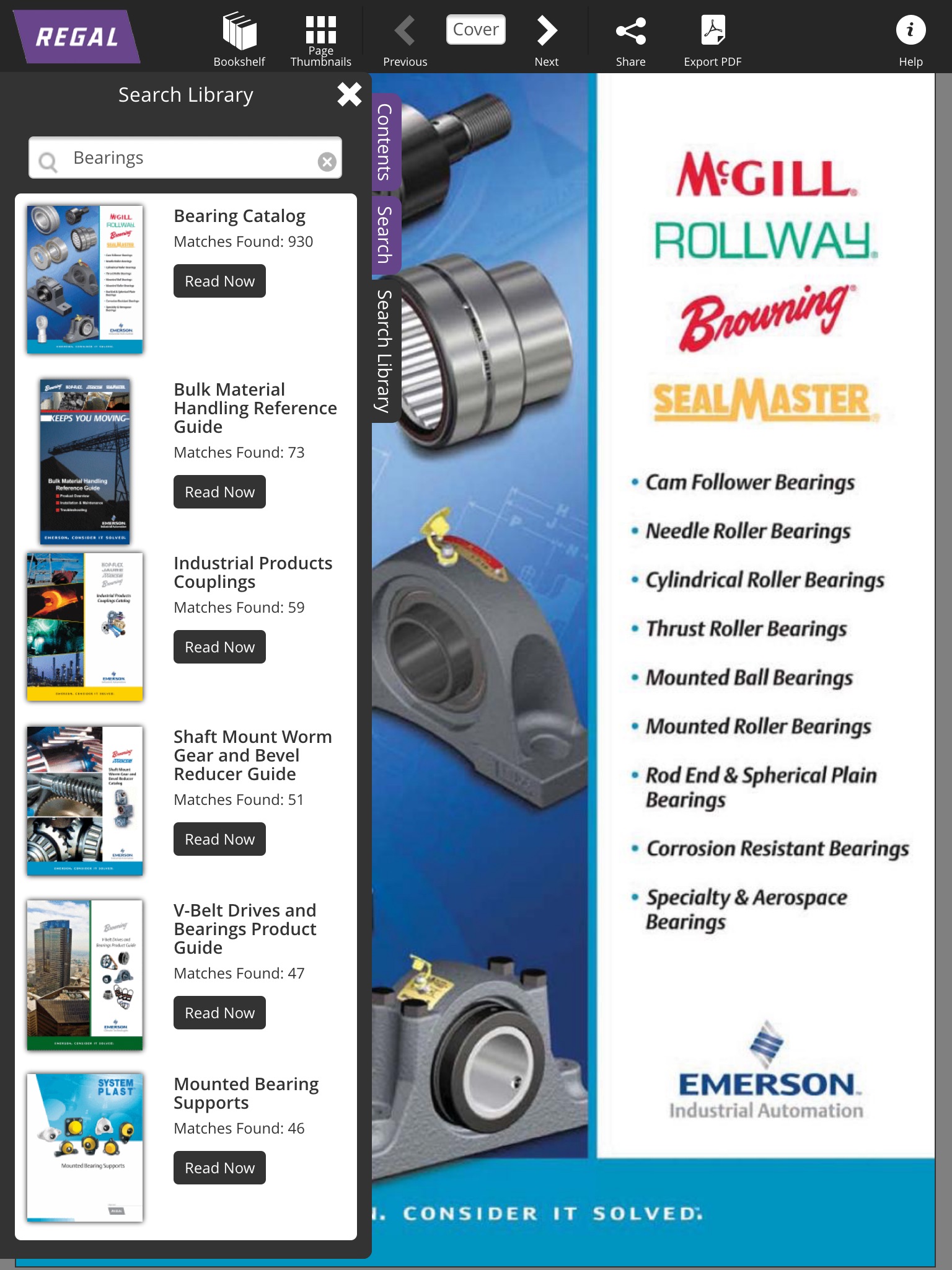 The Power Transmission Solutions free Bookshelf app enables you to browse all our catalogs and interact with the content. These digital versions of our catalogs include all our product brands: Browning®, Jaure®, Kop-Flex®, McGill®, Morse®, Rollway®, Sealmaster®, and System Plast™ and ensures you have the most up to date information. Search for products within or across multiple catalogs to find exactly what you’re looking for and place on your own bookshelf. Download to view all our product Solutions.