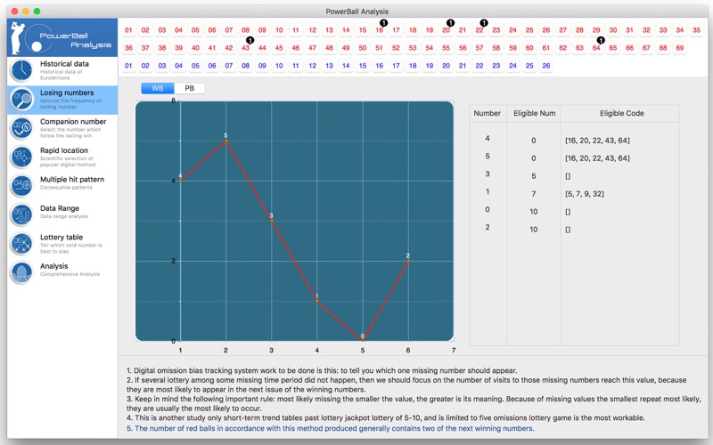 PowerBall Analysis is based on the very scientific theory of lottery analysis and provides the corresponding analytical tools. It is a ruler to measure the distance between you and the winning number.