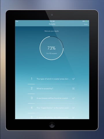 - Detailed result with percentage of your last test taken.