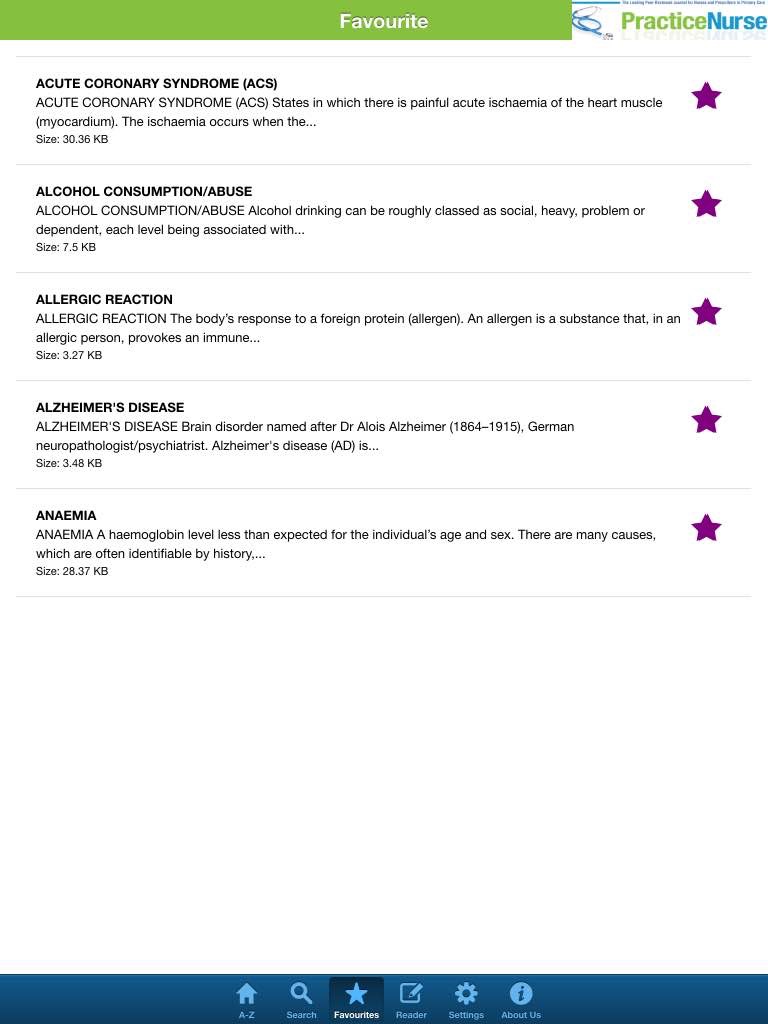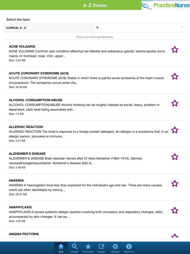 With the Practice Nurse app, you can access the A-Z Catalog of Journals, perform a full text search, mark your favourites, and read all our journals at ease with our ePub reader.