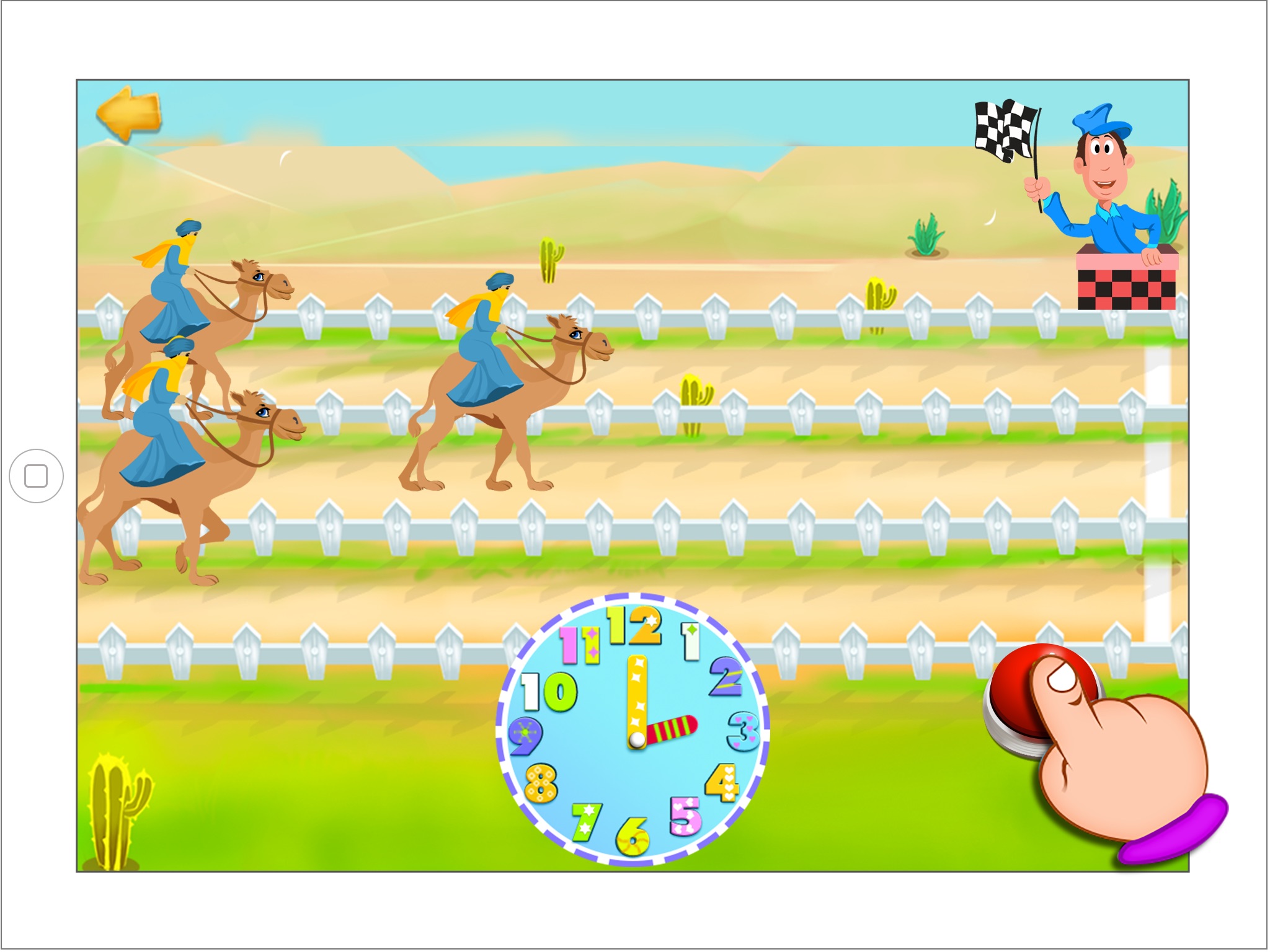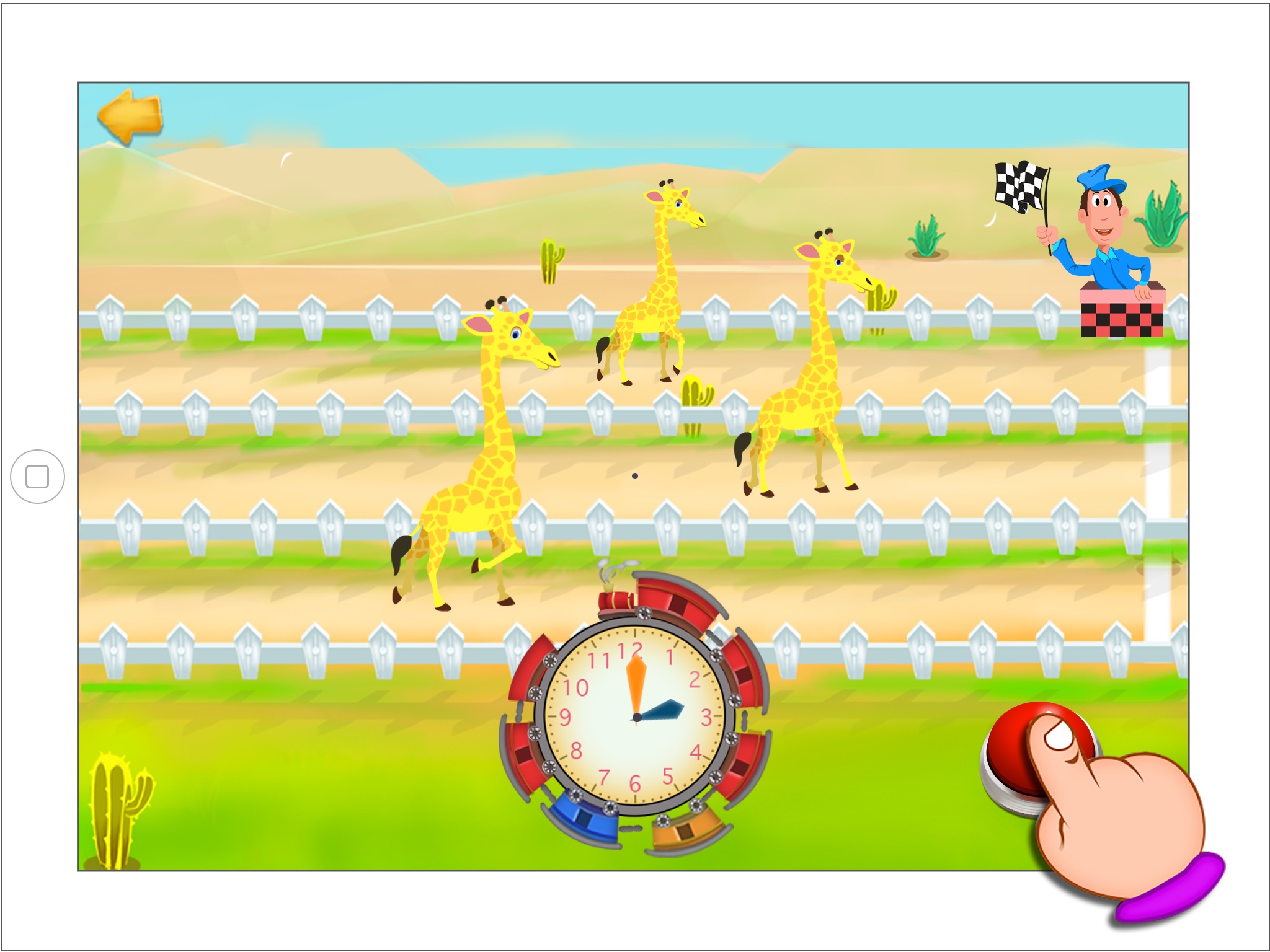 The app is deliberately designed to slow down the friends so that your children can win the race. Winning the race would want them to play more resulting in lots of practice of telling time.