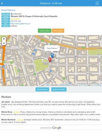 - Place Finder with complete information about object (adress, map, users rating, route, website, phone number)