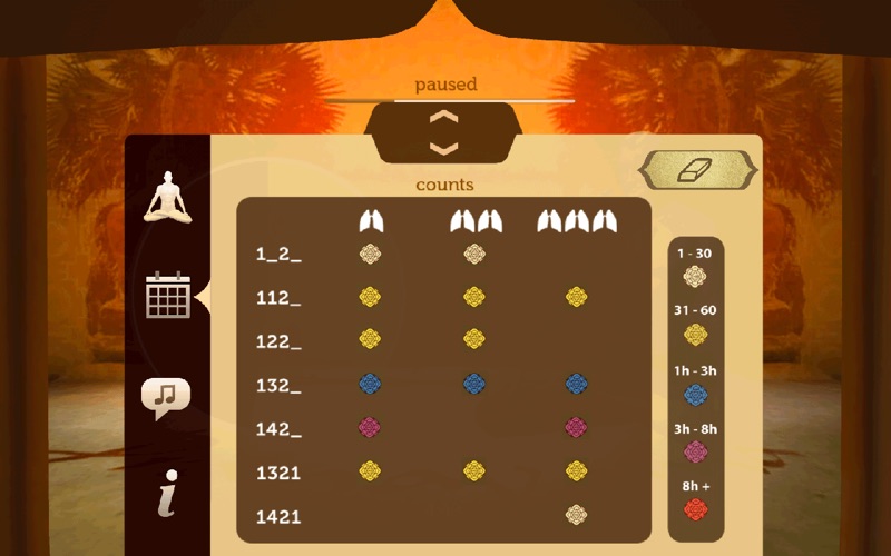 Pule a versão free. Só este deixa programar as sequencias de respiração lenta pra utilizar nos momentos de estresse. Eu criei uma, The Zuari way of Zen, muito boa: 2-0-2 3-0-2 2-1-2 3-1-2 Com ela, o tempo que o oxigênio fica no cérebro vai aumentando, eu acho. Deixei só quatro estrelas ao invés de 5 pois o programa não deixou diminuir o inhale nem exhale de 2 pra 1. Queria ter deixado o exhale em 1 pra todas e testar, assim ficaria: 2-0-1 3-0-1 2-1-1 3-1-1