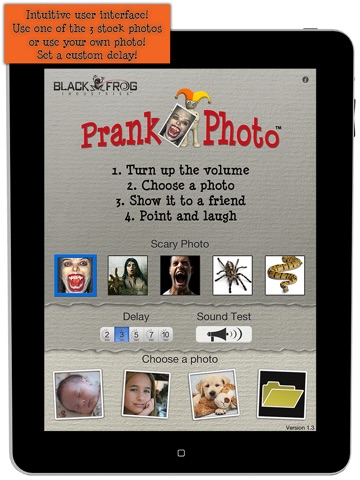 Scare your friends with Prank Photo! Show them a photo of anything you want, and a few seconds later they will FREAK OUT when the photo changes to a scary face and SCREAMS at them! And the best part...it will take a photo of them freaking out at exactly the right moment! You will laugh for hours, and you will have a great photo to share on Facebook, Twitter, and email!