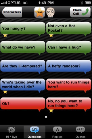 You’ll find there’s much more to this App than just another soundboard of quotes too. Prank Stars gives you touch screen navigation between pages of greetings, questions, replies, and quotes, making it simple to create a hilarious banter. Flick through the multiple pages of phrases and youll even notice theyre color coded as Friendly (green), Neutral (blue) and Angry (red) so you know what type of emotion the phrase youre tapping is.