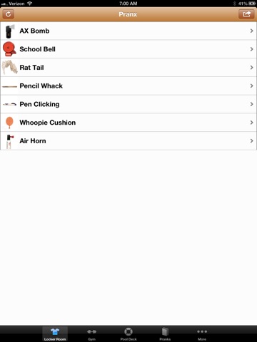 You can pull out a Woopie Cushion anywhere you like. AX Bomb your friend in the locker room, Pencil Whack or rapid Pen Click during study hall, or the ultimate - Rat Tail Towel Snap your teammate! Have you ever wanted to pull the School Alarm? You can with Pranxter!