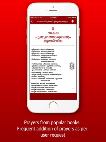 • Daily prayers, Common prayers, Yaama praarthanakal, Prabodhana japangal, Japamaalakal, Holy Mass, Vanakkamaasam, Madhyastha Praarthanakal and a lot more.