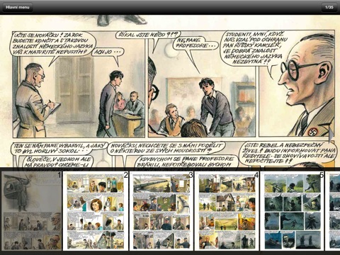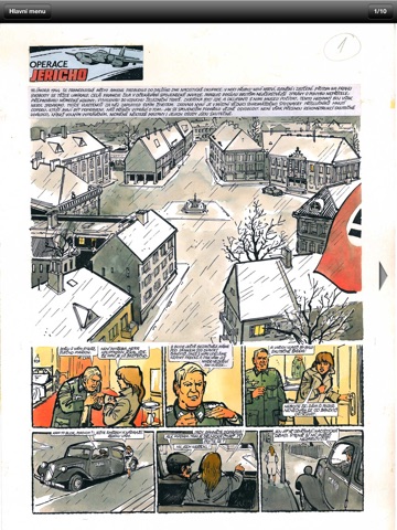 Snažili jsme se o co největší čtenářský komfort. Aplikace umožňuje prohlížet komiks v několika módech. Buď si můžete jednoduše listovat stránkami a zvětšovat či zmenšovat je pomocí dvou prstů, nebo se dvojitým poklepáním dostat do obrázkového módu. V něm pohodlně procházíte komiks políčko za políčkem. Jedno klepnutí na stránku zobrazí náhledy dalších komiksových stránek.