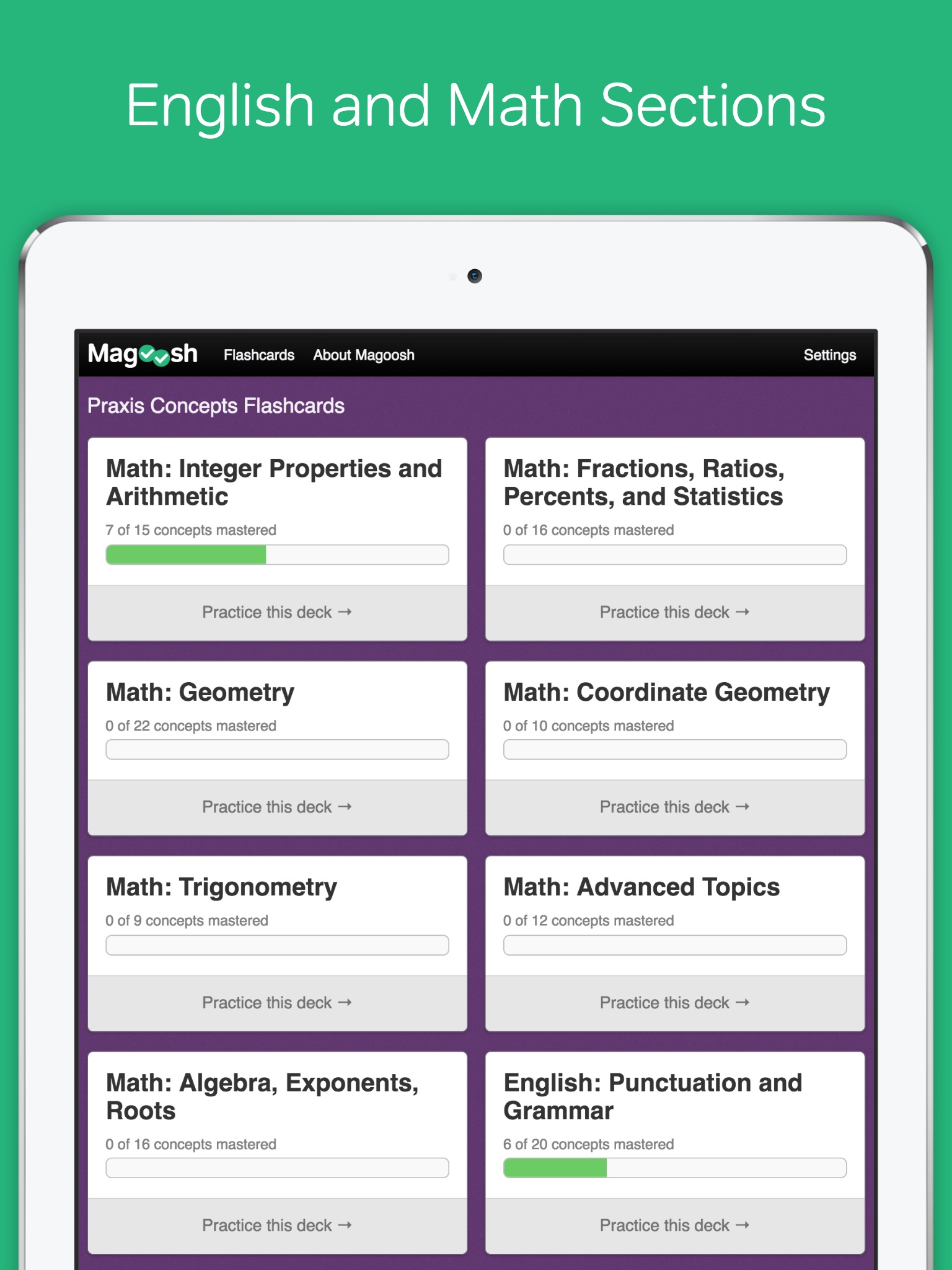 We intended for this app to be for Praxis practice only, but have since found that it is very helpful for teachers prepping for any licensing exam, as well as other standardized exams for which basic math and verbal skills are tested such as the GRE, GMAT, TOEFL, SAT, ACT and GED. All of our students find the Praxis math sections especially helpful