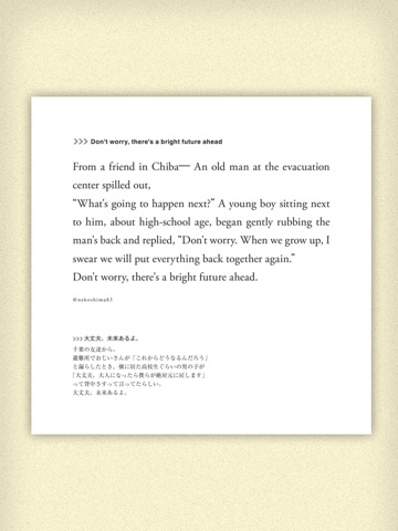 The app comes complete with exclusive features tailored for iOS, including full English, Chinese, and Korean translations in addition to the original Japanese, and tranquil background music performed by the pianist TOKITA Shintaro of Sukima Switch.