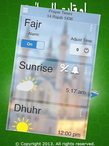 "Prayer Times" also known as Salah times is an over-the-top iPhone/iPad application, which is need of every Muslim. This free islamic application is a very special gift to Muslim community on this Holy Month of Ramadhan (رمضان). "Prayer Times" reminds you about prayer timings with beautiful voice of Adhan (Arabic: أَذَان) .It keeps on reminding you about different "Prays" (دعائیں) and "Zikr" (ذکر) suggested by Prophet Muhammad (S.A.W.W.) on right time. You can always check for Qibla (کعبہ) direction. In short, this application is all about Prayer (Salah/الصلوٰۃ/نماز), reminds you on accurate prayer time in your area, sends important "Prays" and "Zikr" after prayers. The most amazing thing is, you can customize everything in it, to make this application look like your own customized app.