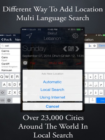 b) Local Search and you have over 23,000 cities around the world inside the app without needing to connect to the internet with Multi Language support so you can search with your native Language (English,Arabic,Russian,Chinese,etc..).