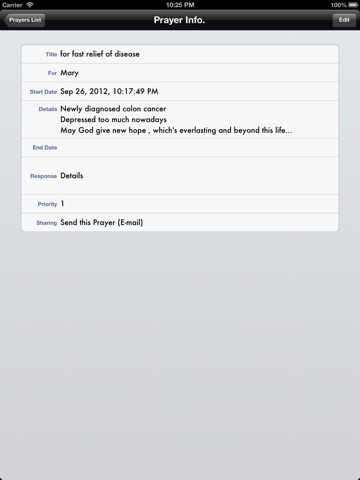 7. Intercessory prayer (praying for others) is supported by clicking a Contact from your own address book.