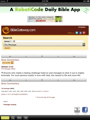 Were also excited to announce that we can bring you access to the mobile version of BibleGateway, so you can get even more out of the verse by simply clicking and going online and reading the whole chapter in any number of different translations of the Bible, using this excellent and trusted resource.