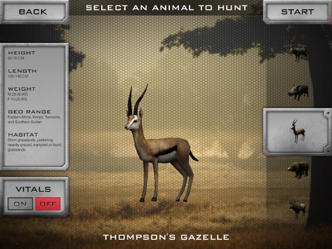 Precision Hunter Lite is an extreme distance first-person hunting simulator that showcases the future of high tech hunting and shooting. In 2013, the world of hunting changed entirely with the introduction of Precision Guided Firearms (PGF) - shooting systems that apply fighter jet lock-and-launch technology to hunting rifles. In Precision Hunter Lite, you experience the future of hunting in a first-person gaming scenario, taking shots at long range using the same Heads Up Display interface as a real PGF. In a luscious 3-dimensional safari world, you can stalk a variety of realistic game and learn how to master the Tag Track Xact (TTX) shot sequence to make accurate, ethical shots at long range.