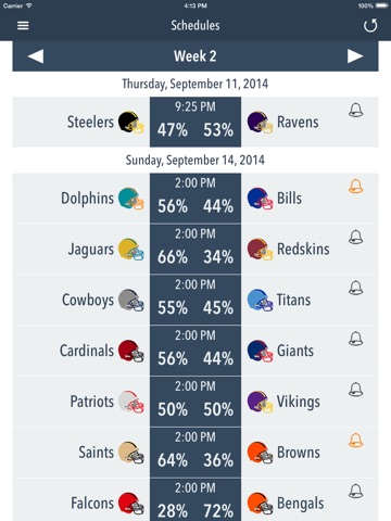The most complete app of NFL with the exclusive Predictor feature, is now available, with calendar integration and live scores. The app works even offline, and updates all the data when a connection is established. *Predictor uses advanced mathematical calculations and statistical analyzes to generate the odds of a team win each game, classify for Playoffs and become the Champion. Perfect for your Fantasy Football team.