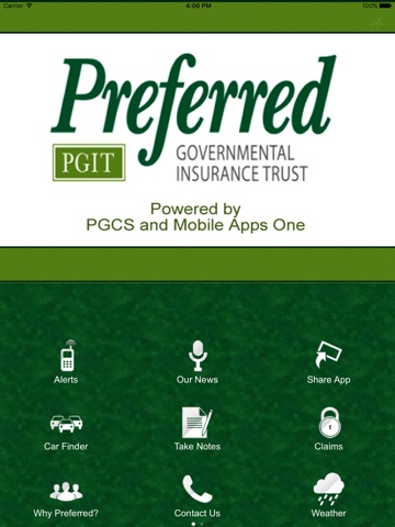 The Preferred Governmental Insurance Trust mobile app provides its agents with a mobile claim form portal, access to the latest news and alerts, severe weather updates, access to claim contacts and important resources. This mobile app is brought to you by Mobile Apps One.