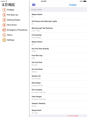 Preflight Mobile R-22 Police is unlike any other preflight app out there. We have taken the preflight experience to a new level by adding photos and detailed descriptions to aid you in having the safest flight possible. This is a must have for student pilots, new aircraft owners, and the casual flyer.