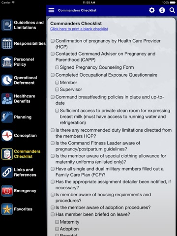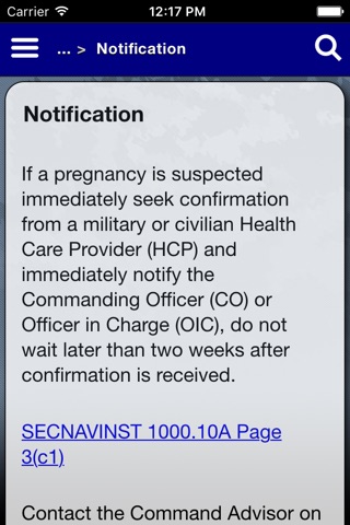 Pregnancy and parenthood can be compatible with a successful military career when Servicemembers and the Command both understand their roles and responsibilities. This app makes that task easier by identifying regulations, instructions, and references from a wide variety of sources and offering them in one easy-to-use app. The app includes information regarding assignments, retention, separation, standards of conduct, and much more.