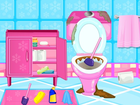 Our beloved Barbara is pregnant, so she can’t do everything by herself. She needs to clean up the bathroom, because it’s very messy. Let’s help her to clean the toilet and wash off all the dirt. Have fun!