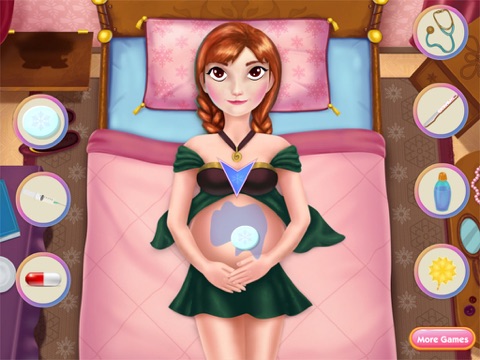 Princess anna is admitted to the hospital with labour pain. she is expecting the baby anytime. antony is waiting outside anxiously. you have to help the doctor in assisting the delivery. but the doctor finds that she has to undergo caesarean section for the delivery. give medicine to anna and prepare her for the surgery on the operation table. take out the baby. antony is happy to receive the baby from you. anna and antony becomes proud parents of a baby.