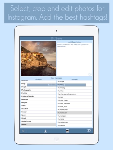 Edit your photos in a fast and efficient way before uploading to Instagram! Gain followers and receive likes by adding the perfect hashtags!