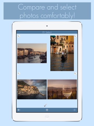 + Compare the photos in on a special compare screen and select your favorite one to proceed