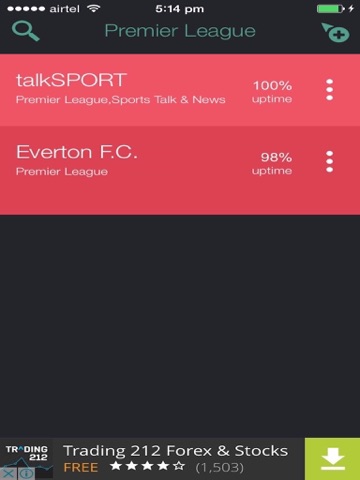 Introducing the best Premier League Radio Stations App with live up-to the minute radio station streams from around the world. This app has hundreds of the top "Always Live" radio stations arranged by the station’s uptime percentage so you always get a "Live Radio Feed". We have also integrated a 1-Click YouTube search feature that lets you watch videos of any song that is playing on live radio. Our app also shows you information about what song is currently playing on any particular radio stream & allows you to share radio station links with your friends and family that will work on any mobile browser without having to download our App. This App allows you to search any radio stations by name but if you are in the mood of listening to a different variety of songs you can easily search our entire website from within the app, which will search our entire index of over 30,000+ Radio Stations. We have worked very hard to build this beautiful Radio App with all the best design practices which will provide you with the best user experience & hours of entertainment.