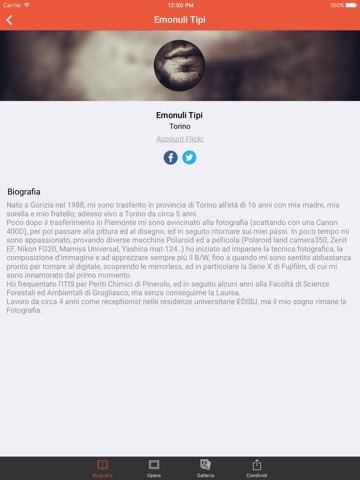 Questa applicazione consente di vedere tutti gli artisti che partecipano al Premio, di visualizzare le loro opere e mettere Mi piace, di leggere le loro biografie. Tutte le informazioni e le foto resteranno visibili nel tempo e gli artisti avranno la possibilità di aggiungere altre opere anche fuori concorso.