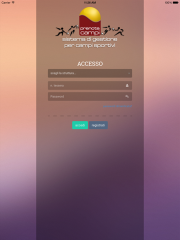 - Prenotazione campo: ti permette di visualizzare la lista dei campi e degli orari disponibili presso la struttura in cui sei iscritto e prenotare il campo che vuoi.