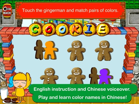- Colors: Red, orange, yellow... Let’s match different colors of Gingerman, and learn color names in Chinese.