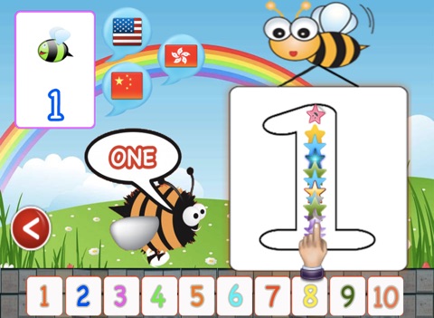 * Numbers: Numbers from 1 to 10 with their sound, and counting objects