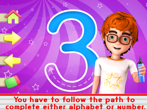 Preschool Write Letter ABC 123 is a simple educational game which teaches children the alphabet letters & numbers 123 as they appear. We have made it easy for your kids to familiarize themselves with the ABCs (english alphabet) and numbers by tracing the dashed lines. There are audio for each letter and number so your kids can get familiarized with the sounds. Trace Capital alphabets, small alphabets and numbers for kids right on the dots. You have done a great job if you traced it correctly, but if you go wrong anywhere, it will automatically remove that line with a buzzing sound.