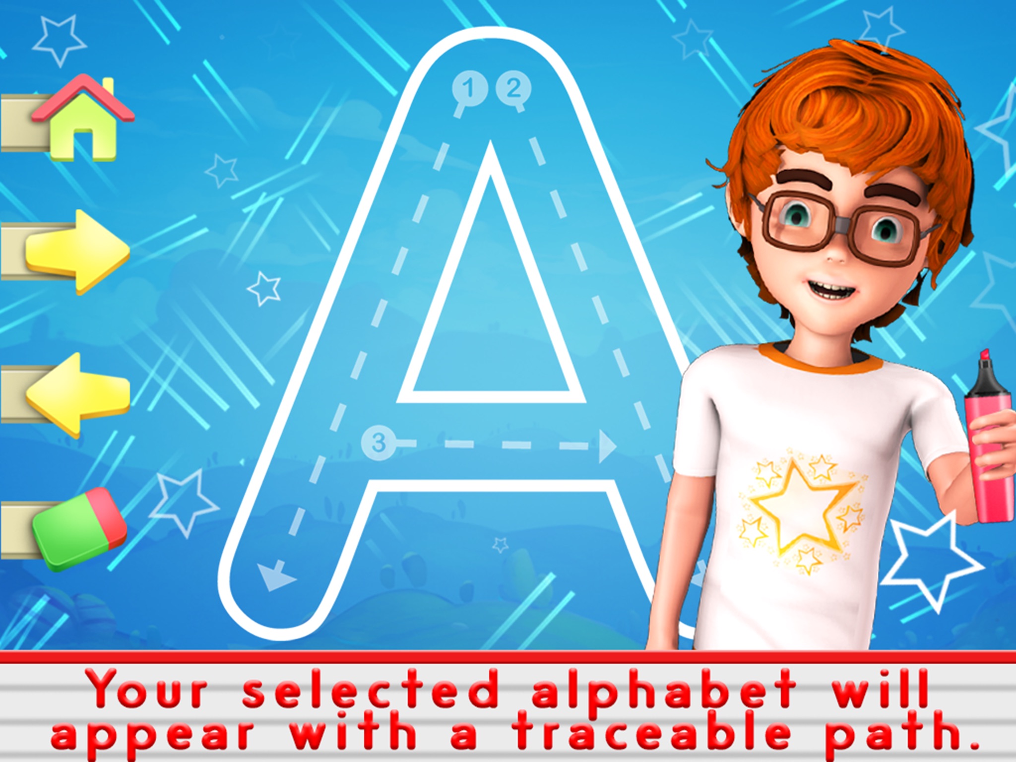 Preschool Write Letter ABC 123 is a simple educational game which teaches children the alphabet letters & numbers 123 as they appear. We have made it easy for your kids to familiarize themselves with the ABCs (english alphabet) and numbers by tracing the dashed lines. There are audio for each letter and number so your kids can get familiarized with the sounds. Trace Capital alphabets, small alphabets and numbers for kids right on the dots. You have done a great job if you traced it correctly, but if you go wrong anywhere, it will automatically remove that line with a buzzing sound.