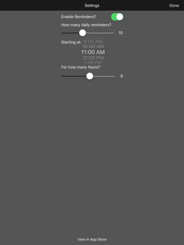 - Configurable reminders to alert you throughout your day to check in with your focus. Choose what time you would like your daily reminders to start each day, and how many reminders to receive.