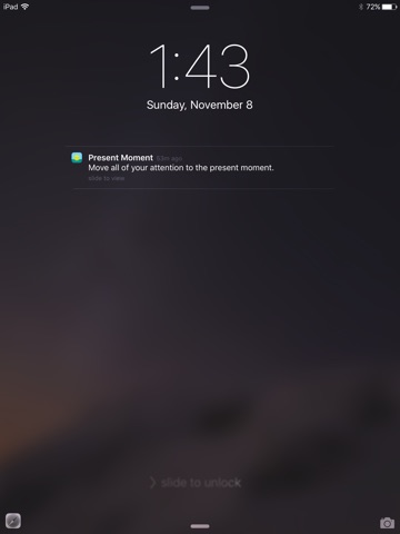 The "Present Moment" app can help with your practice by offering daily quotes from mindfulness teachers, as well as notifications during your day gently reminding you to bring your attention to the "now".