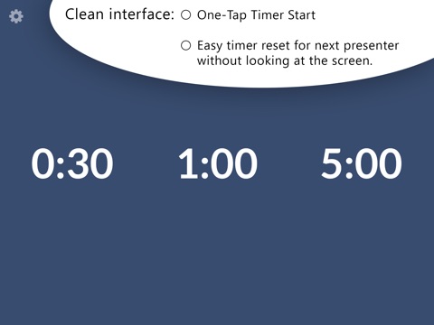 Presentation Ender is a perfect tool for business networking groups (BNI, Toastmasters, etc.), school debates, or any other turn-based presentation setting. The large countdown is easy to see from across a room. Resetting the timer for the next person is easy to do without looking at the screen, making it much easier for the person managing the timer.