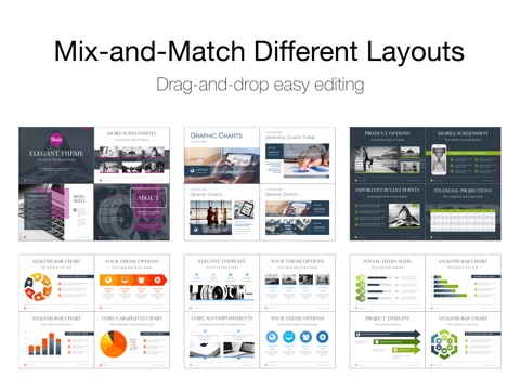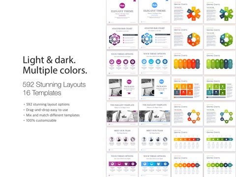 These stylish and modern layouts make it simple to create and deliver beautiful presentations. Impress your audience and bring your ideas to life with these drag-and-drop easy to use designs.