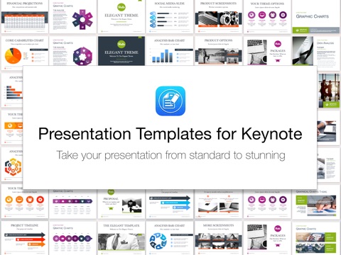 Presentation Templates for Keynote is a collection of stunning Keynote themes designed to make your presentations shine. Take your presentation from standard to stunning with Creative Templates for Keynote.