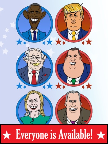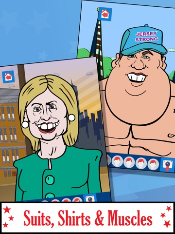 Tap the buttons along the bottom to dress and stage the candidates for President of the United States.