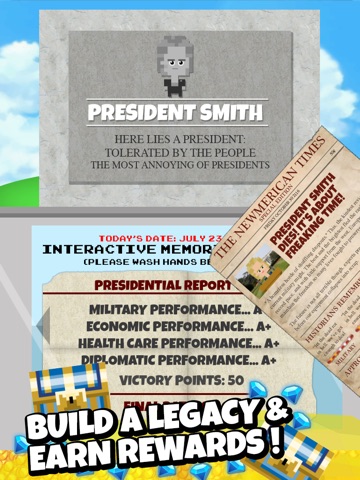 Like any great President, your choices have ramifications. Be sure to keep the people happy and avoid assassination!