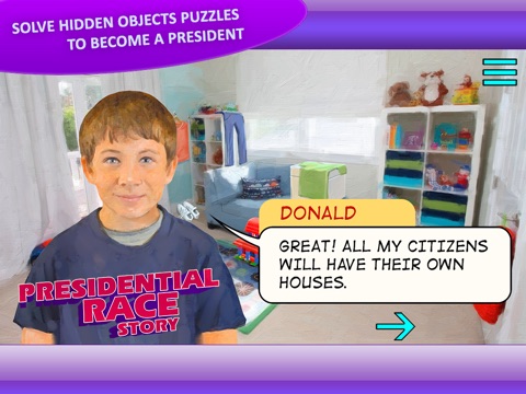 Finding objects and presidential action story are in one game!