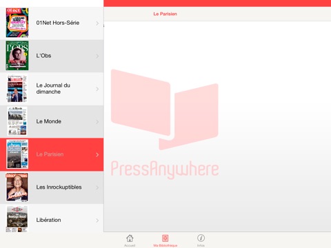 L’application PressAnywhere est gratuite. Les documents sont offerts par le réseau Wi-Fi au visiteur. Celui-ci n’a pas besoin de se créer un compte.