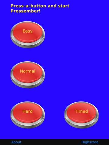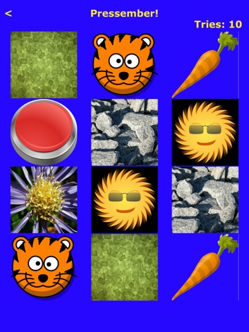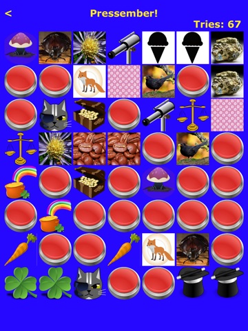 The object of Pressember! (press-and-remember) is to find pairs of pictures that are the same. Press a red button in the game window and remember the picture you see.