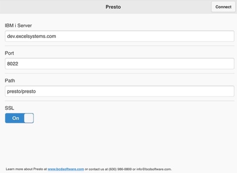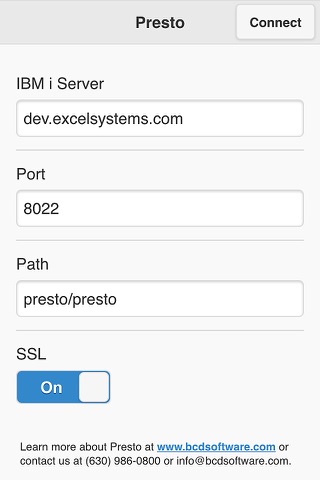 Presto Mobile connects to Presto’s IBM i server-side software.