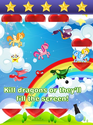 Pretty Unicorns is a fun arcade and action style game that requires timing and strategy to catch unicorns in hearts as they fly around your screen. Everything is fun and care-free until dragons show up. Watch out! dragons will multiply and break or disable your catching hearts and cause havoc!