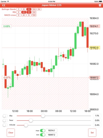• Japanese candlestick charts including MACD, Bollinger Bands, RSI indicators.